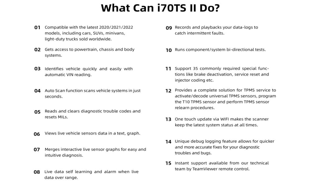Foxwell i70TSII Specifications: