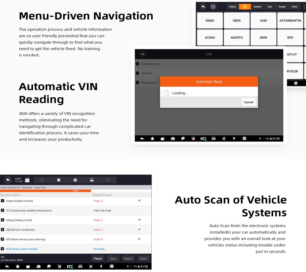 I80II offers a variety of VIN recognition methods, eliminating the need for navigating through a complicated car identification process.