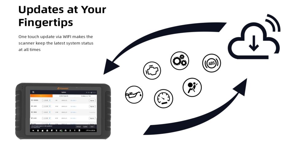 - Auto Scan function scans vehicle systems in just seconds.