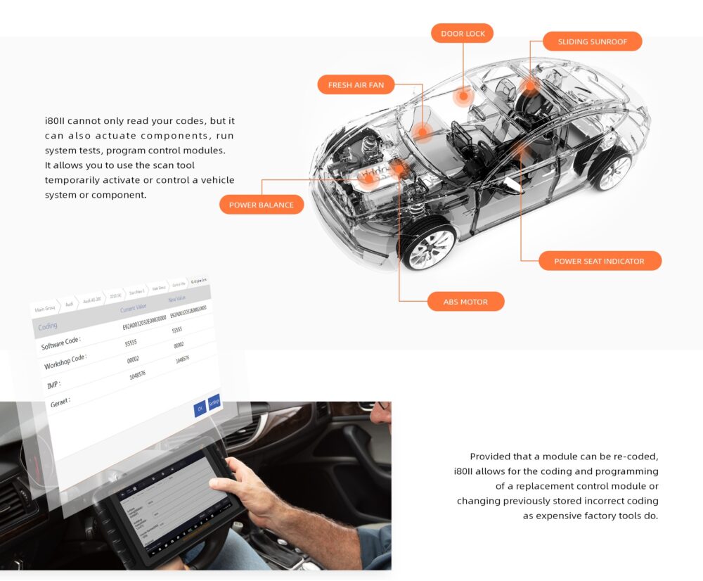 i80ll cannot only read your codes, but it can also actuate components, run system tests, program control modules. It allows you to use the scan tool temporarily activate or control a vehicle system or component.