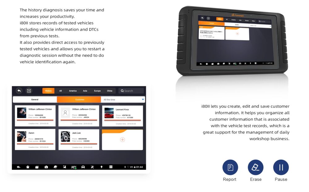 i80ll lets you create, edit and save customer information. lt helps you organize all customer information that is associated with the vehicle test records, which is a great support for the management of daily workshop business.