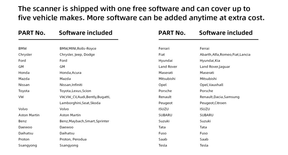 The Foxwell NT530Plus comes with one vehicle brand of your choice.