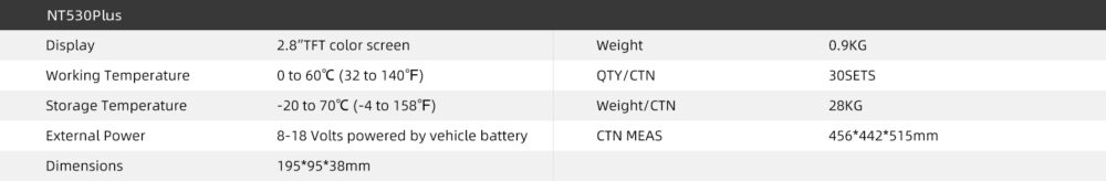 Foxwell NT530Plus Specifications: