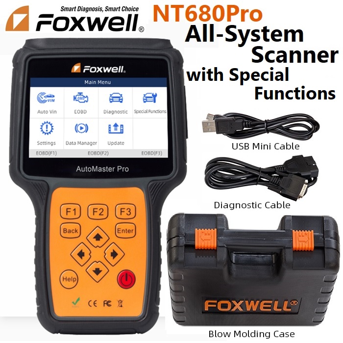 Foxwell NT680Pro All-System Scanner Kit Includes: